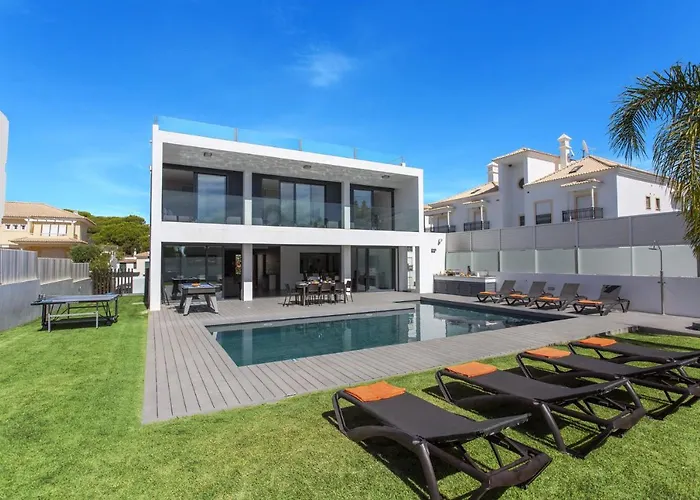 The 4-bedroom Villa Eve By Villa Plus Olhos de Agua is located approximately 25 minutes' walk from Praia Maria Luisa Sandy Beach and allows guests to enjoy pool.